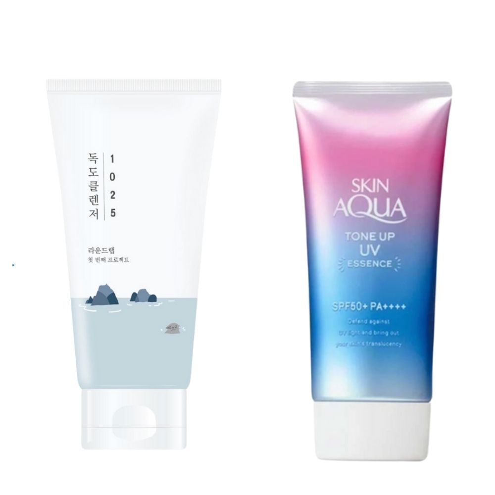 Round Lab 1025 Dokdo cleanser + Skin Aqua Tone Up UV Essence Sunscreen SPF50+ PA++++